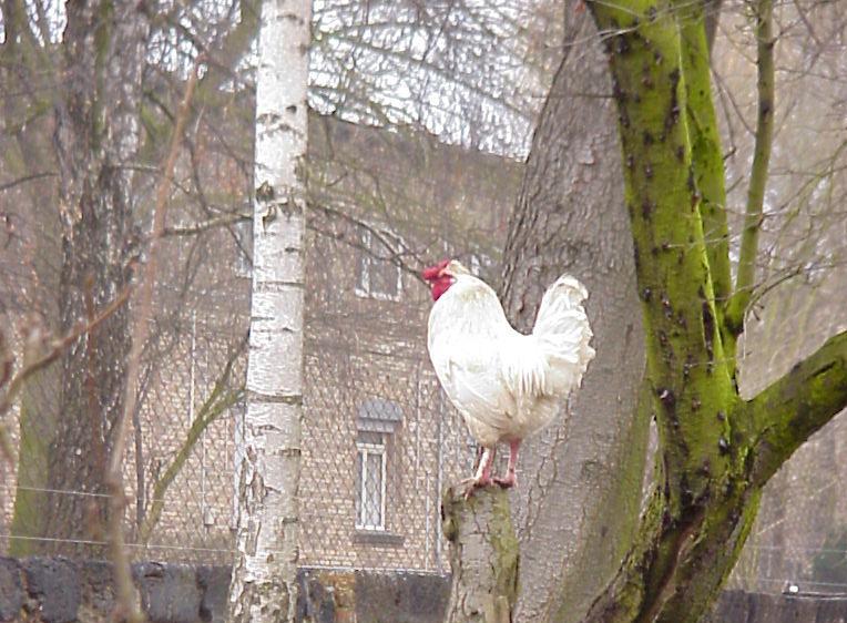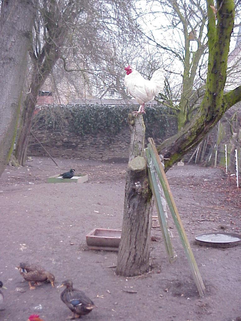 Der Hahn spricht zu Hühnern und Enten